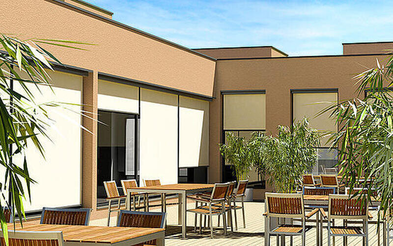 Il sistema di guida con cavetto in acciaio o a scorrimento su cerniere garantisce sicurezza e funzionalità, mentre i tessuti di altissima qualità – disponibili in oltre 400 motivi e infinite combinazioni cromatiche – offrono protezione totale contro i raggi UV.